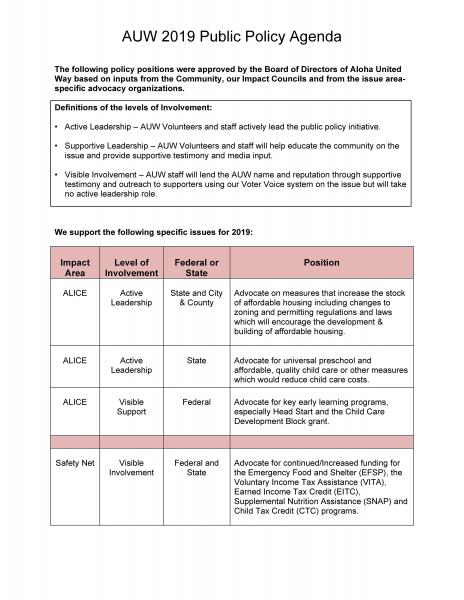 Make your voice heard and help to create real change by joining our movement. Through advocacy, Aloha United Way is working to raise awareness of the issues related to our mission, provide access to tools for making change, and offer opportunities to take action.  We believe that real, sustainable community improvement requires changes in public policy.