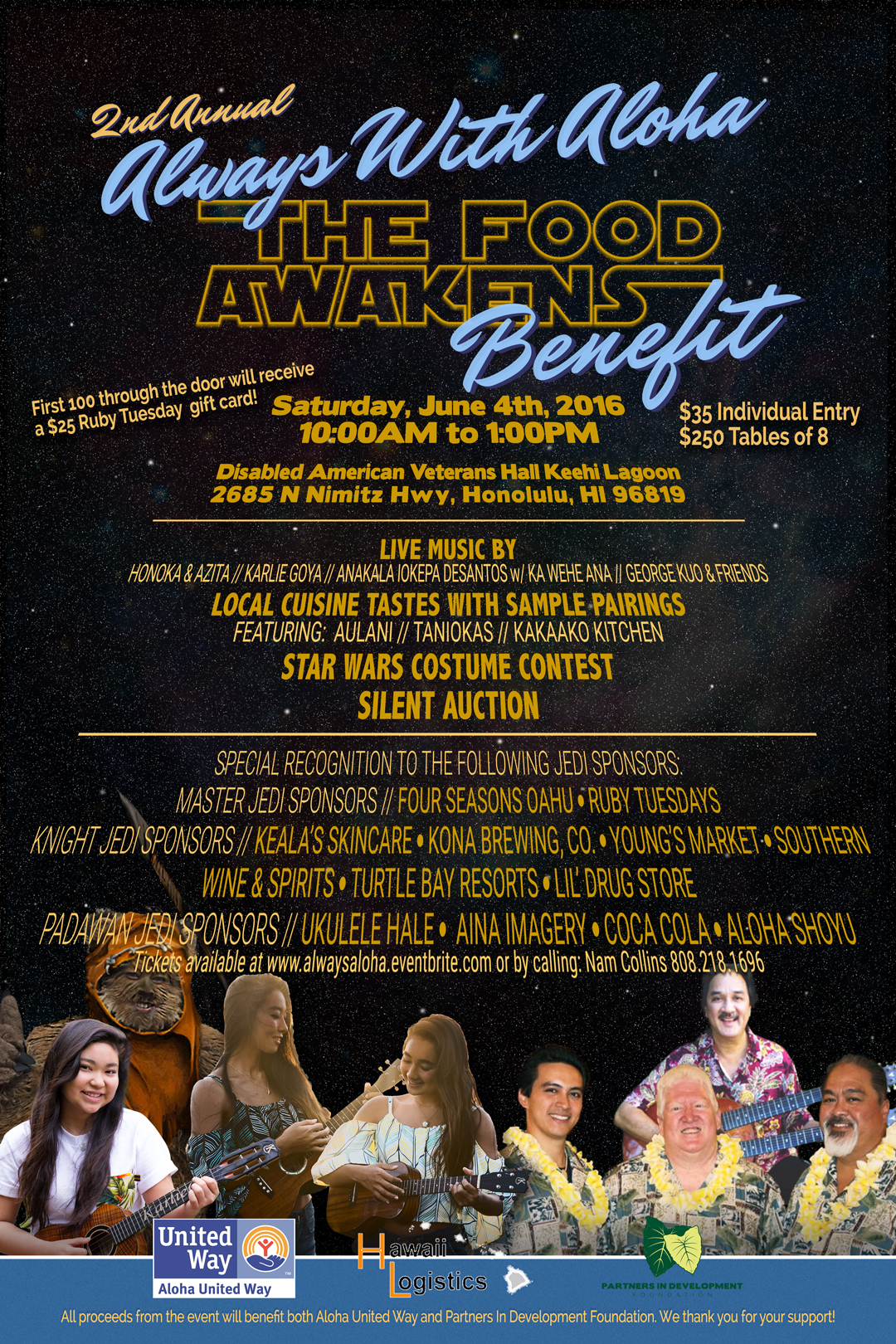 Come out the 2nd Annual Always with Aloha Benefit: The Food Awakens, a Fundraiser for Aloha United Way and Partners In Development