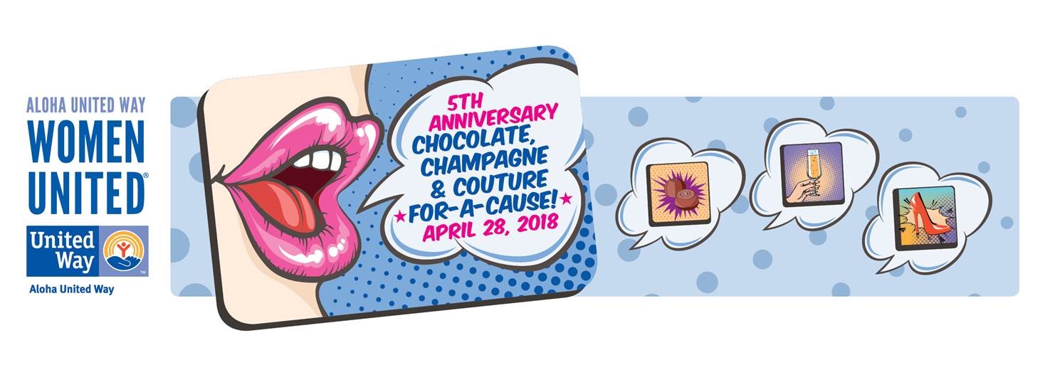 Aloha United Women United will be hosting its 5th anniversary of Chocolate, Champagne and Couture-For-A-Cause this Saturday, April 28, 2018 at the Royal Hawaiian Resort. Check out the promotion we received on KITV and KHON's Living 808 by clicking on the news links below.